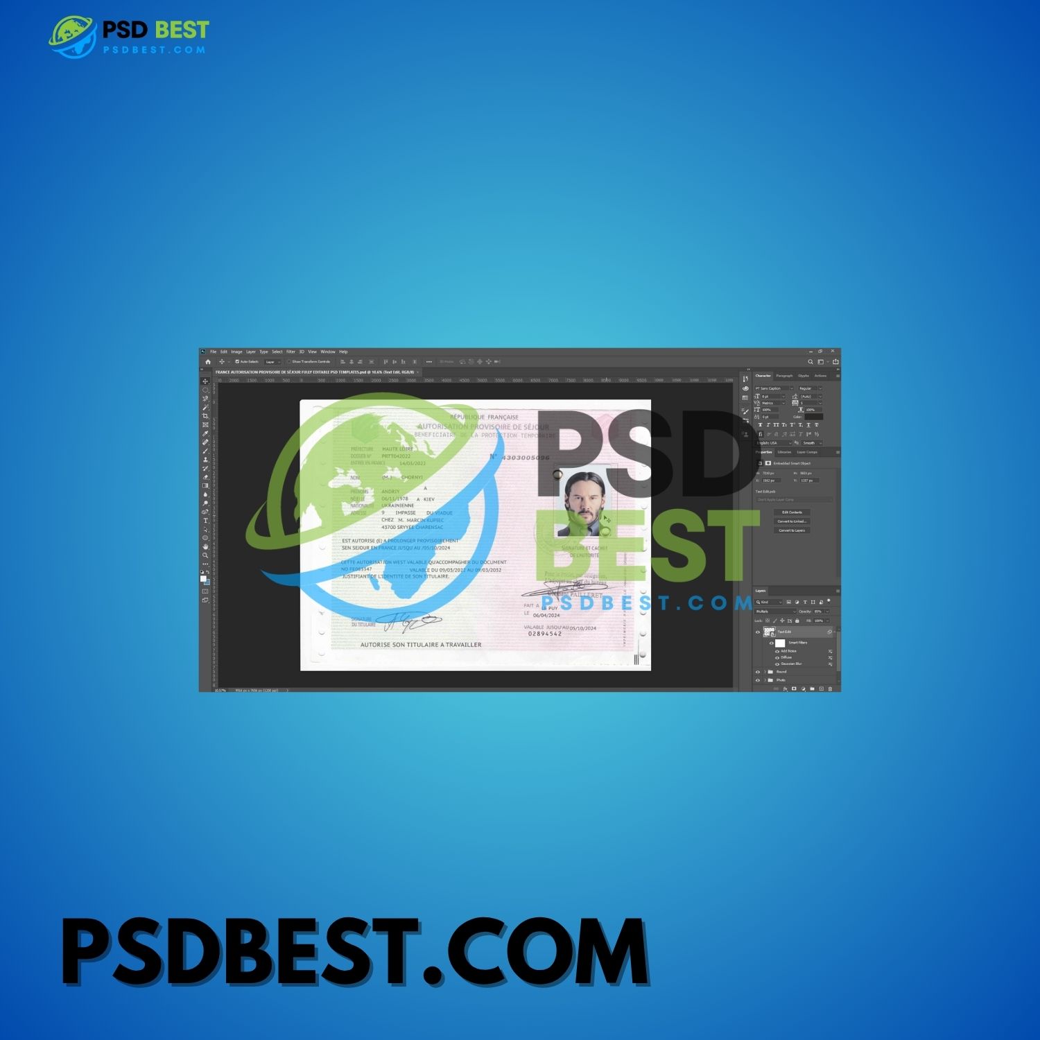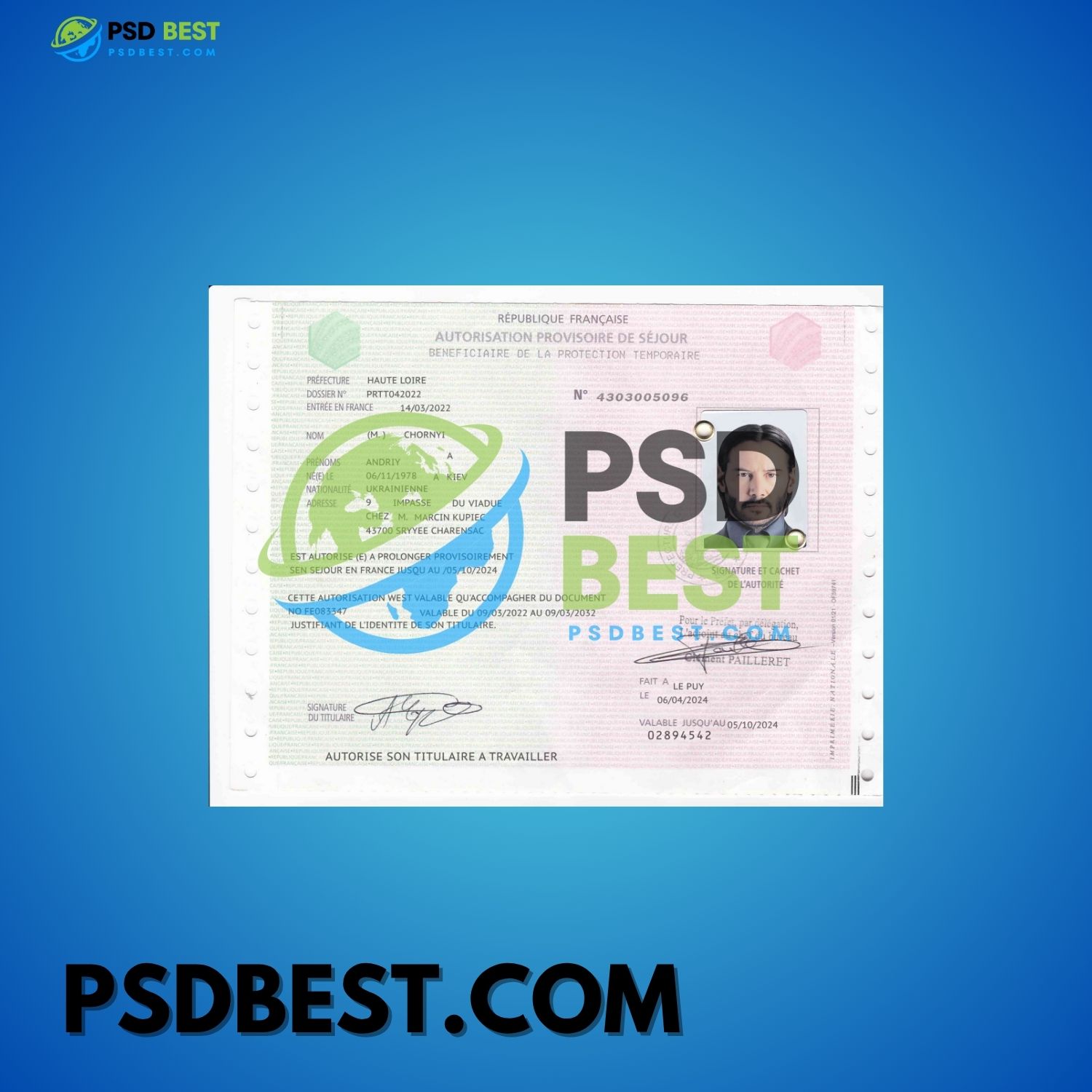 FRANCE AUTORISATION PROVISOIRE DE SÉJOUR FULLY EDITABLE PSD TEMPLATES