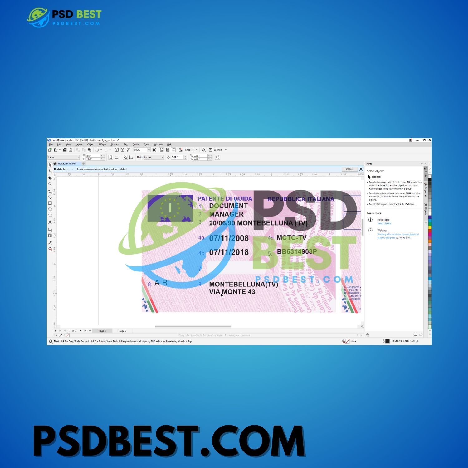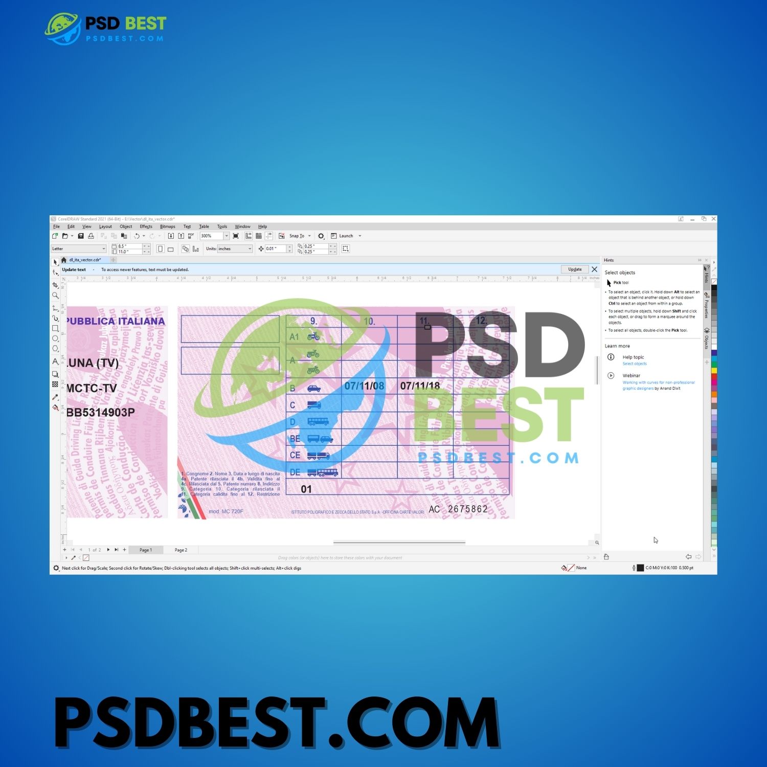 Italy Driving License Front+Back HQ CorelDraw CDR Files