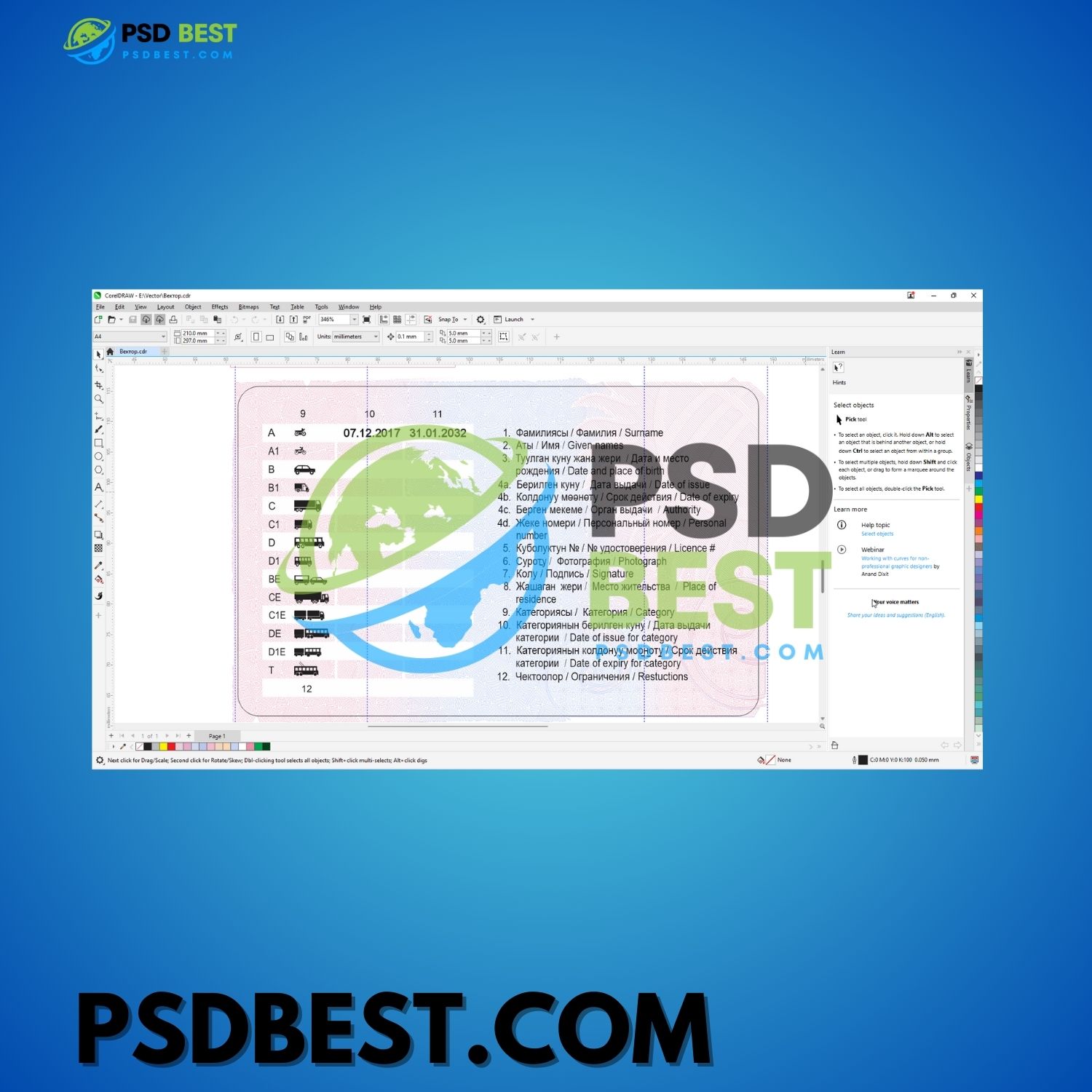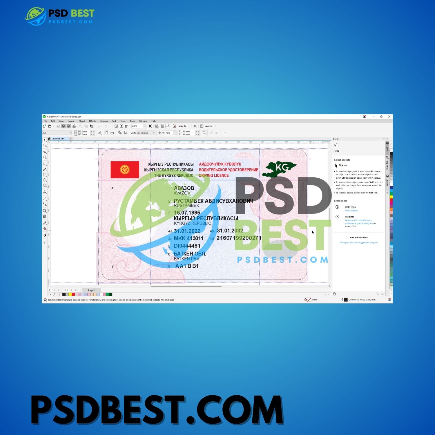 Kyrgyzstan Driving License 2021+ Front+Back HQ CorelDraw CDR Files