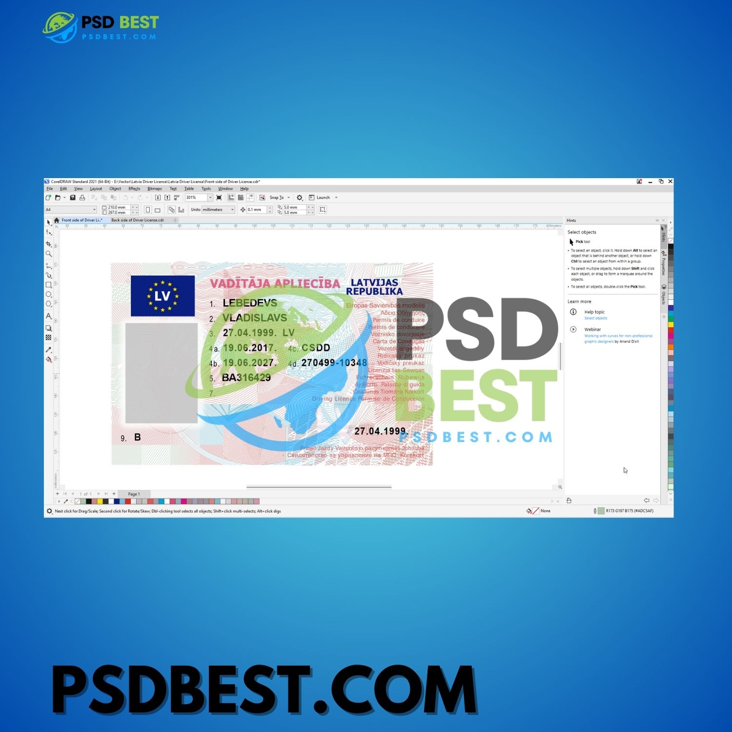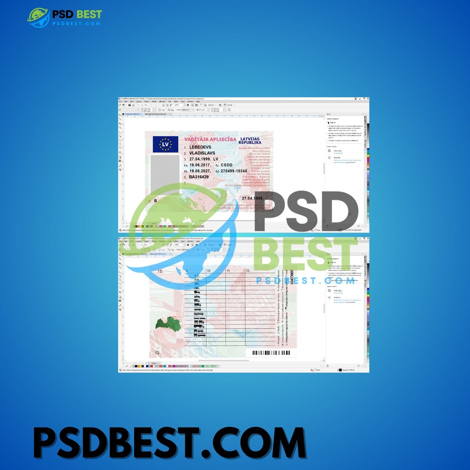 Latvia Driving License Front+Back HQ CorelDraw CDR Files