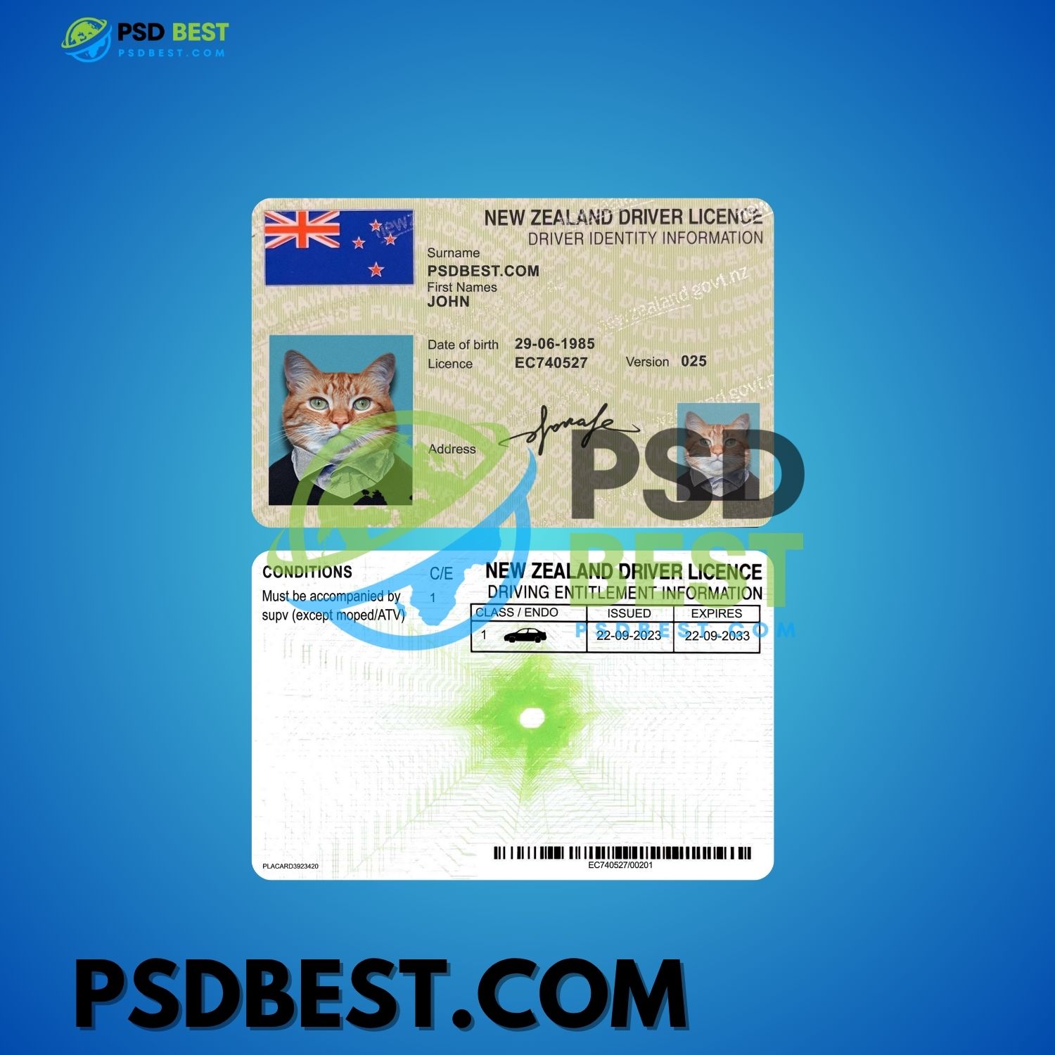 New Zealand NEW Driver License Front+Back Fully Editable PSD Templates