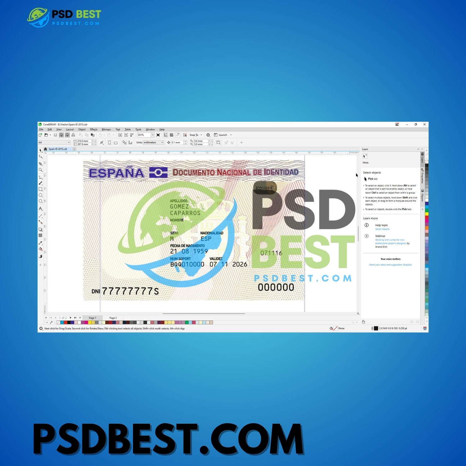 Spain ID Card 2015+ HQ CorelDraw CDR Files