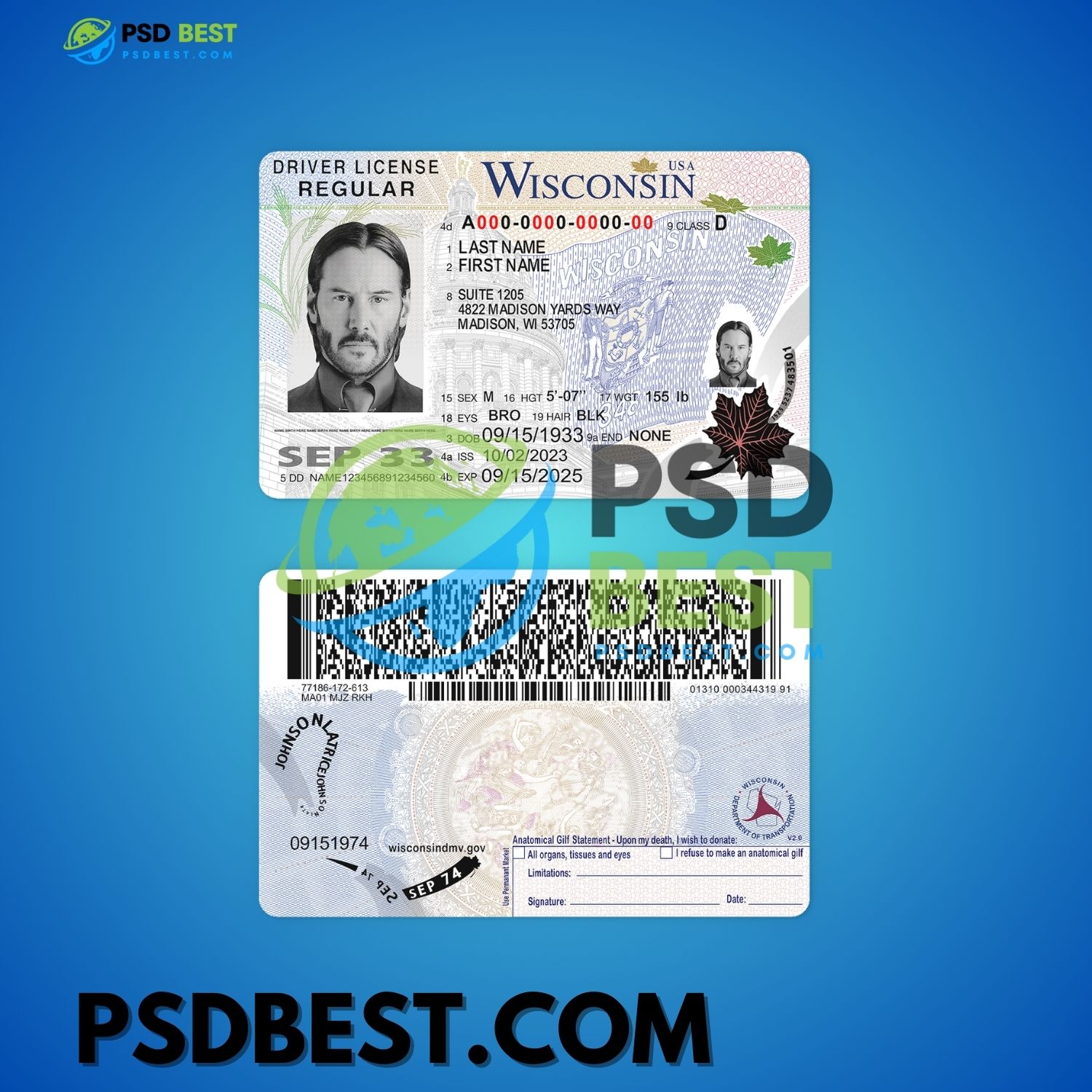 USA Wisconsin NEW Driving License PSD Templates – HIGH Quality